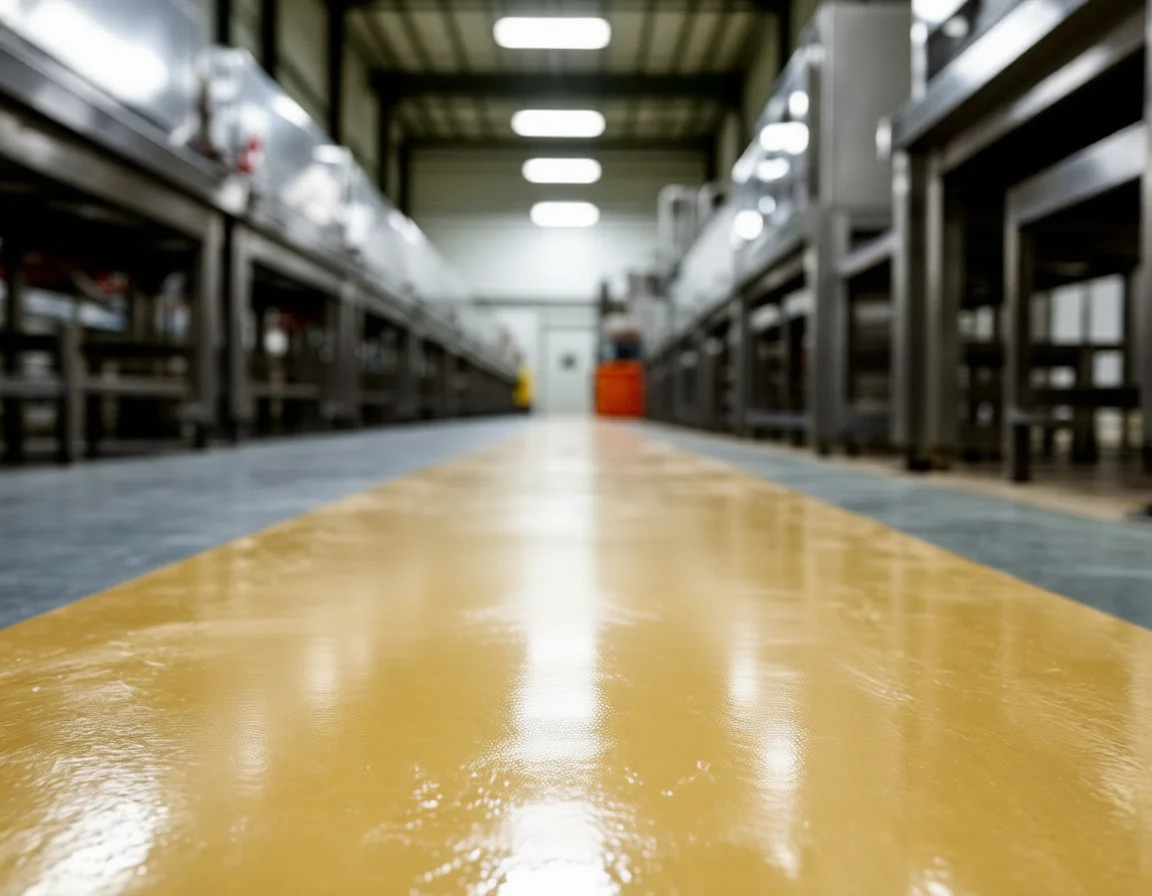 Полы на мясокомбинате работают в экстремальных условиях: постоянная влажность, контакт с кровью, жирами, костной пылью, агрессивными моющими и дезинфицирующими средствами. Кроме того, действуют строгие требования гигиены и безопасности по СанПиН. Напольные покрытия для мясокомбината должны быть бесшовными, химически стойкими, водонепроницаемыми и соответствовать стандартам пищевой промышленности.